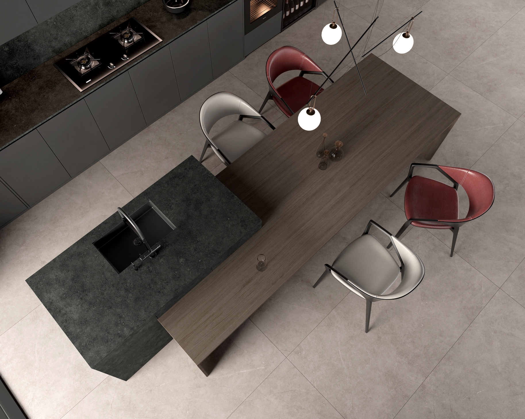凝固的紋理中蘊(yùn)涵砂石的涌動(dòng)跳躍,粗獷而流動(dòng)自然別有一番璀璨星辰的動(dòng)態(tài)神韻。黑曜嵐幕巖板,再現(xiàn)宇宙之外的深邃與神秘。與生俱來(lái)的霸氣與魅惑,不會(huì)因潮流而變化。質(zhì)感非凡,層次豐富,把現(xiàn)代人對(duì)自然的渴望融入巖板設(shè)計(jì)中,喚醒內(nèi)心最深處的悸動(dòng)。