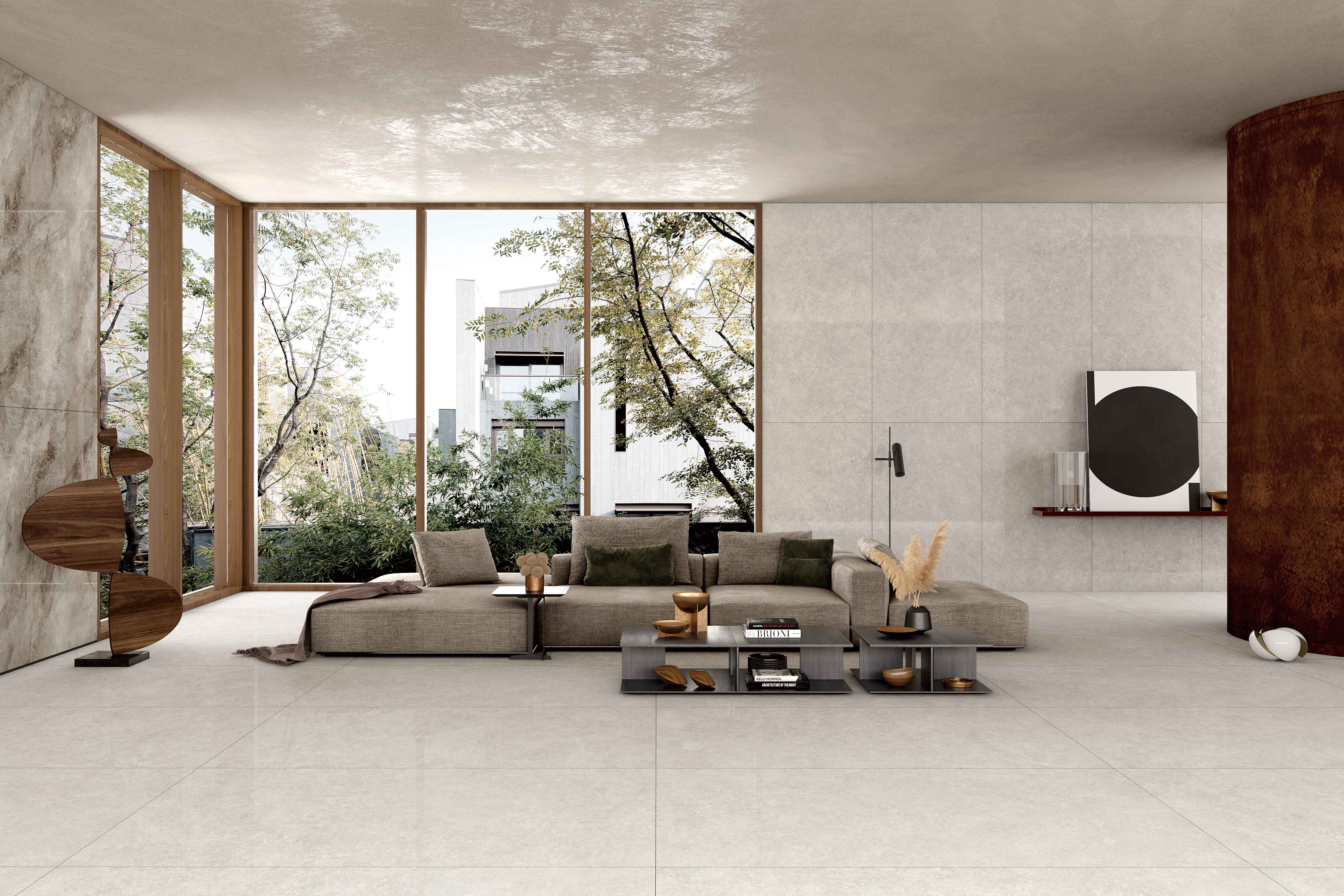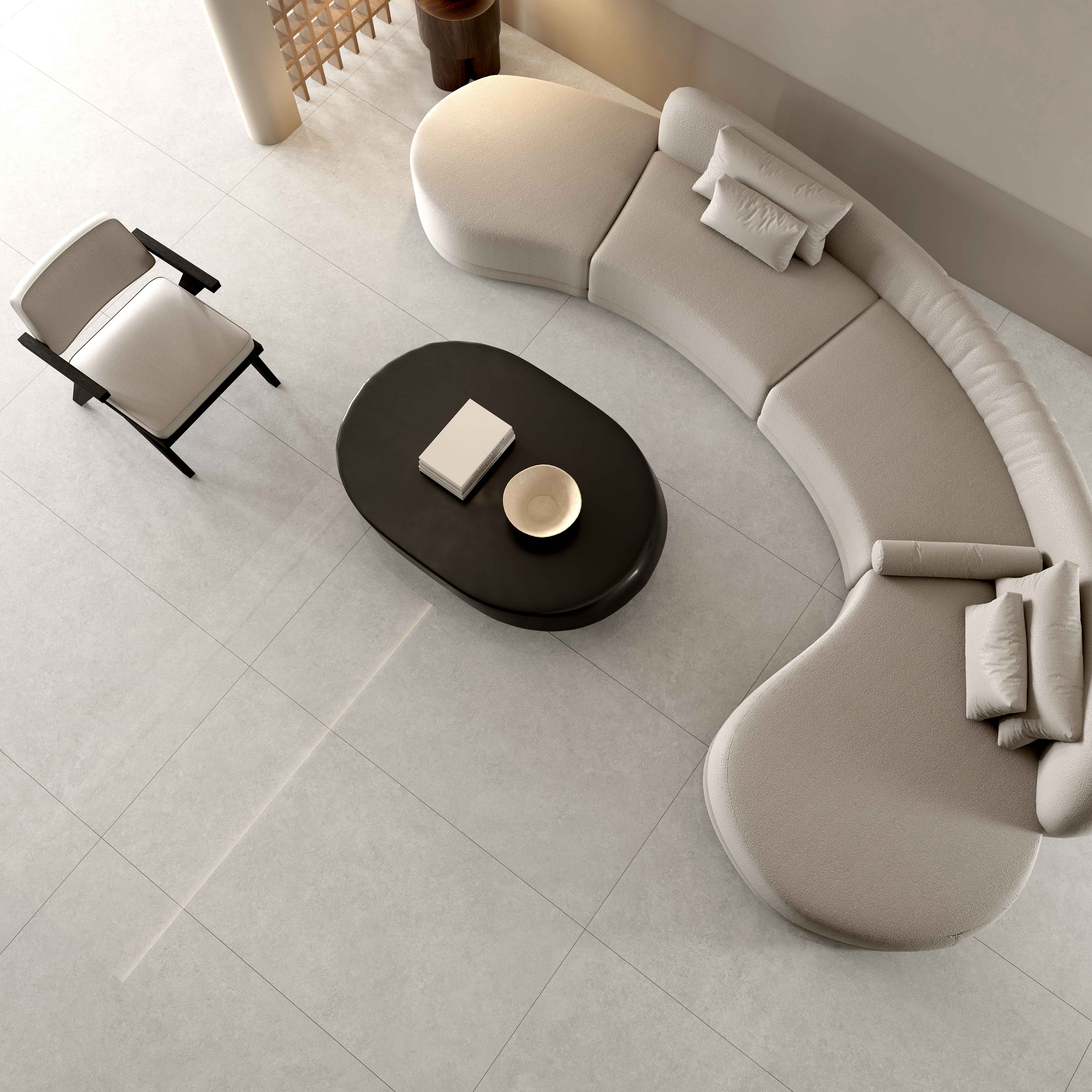 唯美再現(xiàn)大自然中,山峰氤氳在云海里的勝景?;疑状u,隨機呈現(xiàn)的微小紋理或交織、或貫通之下,沒有多樣的繁復(fù)紋理,就已傳達出匹配現(xiàn)代調(diào)性的美感。