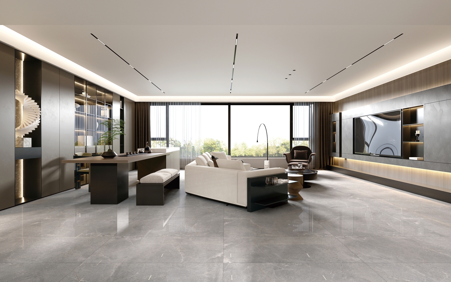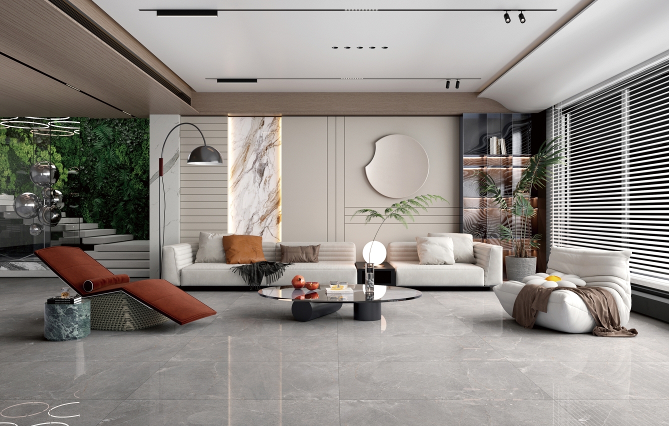 濃郁的灰色色澤,細膩的自然游動,輕松營造出一股浪漫、寫意的空間氛圍。大空間鋪貼,整體感覺更連貫,更氣派。